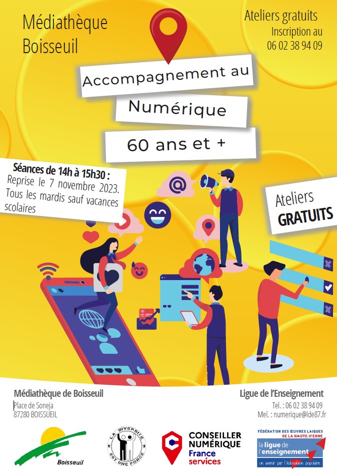 Les ateliers numériques pour les personnes âgées de 60 ans et plus reprendront à partir du mardi 7 novembre à la bibliothèque municipale. … Lire la suiteLes ateliers numériques séniors vous attendent à partir du 7 novembre !