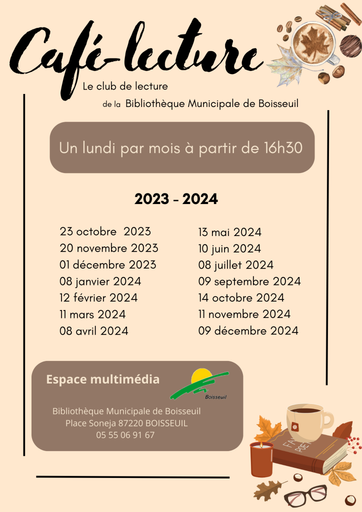 Le club de lecture de la bibliothèque municipale proposera à partir du lundi 23 octobre et un lundi par mois un café-lecture à partir de 16h30.