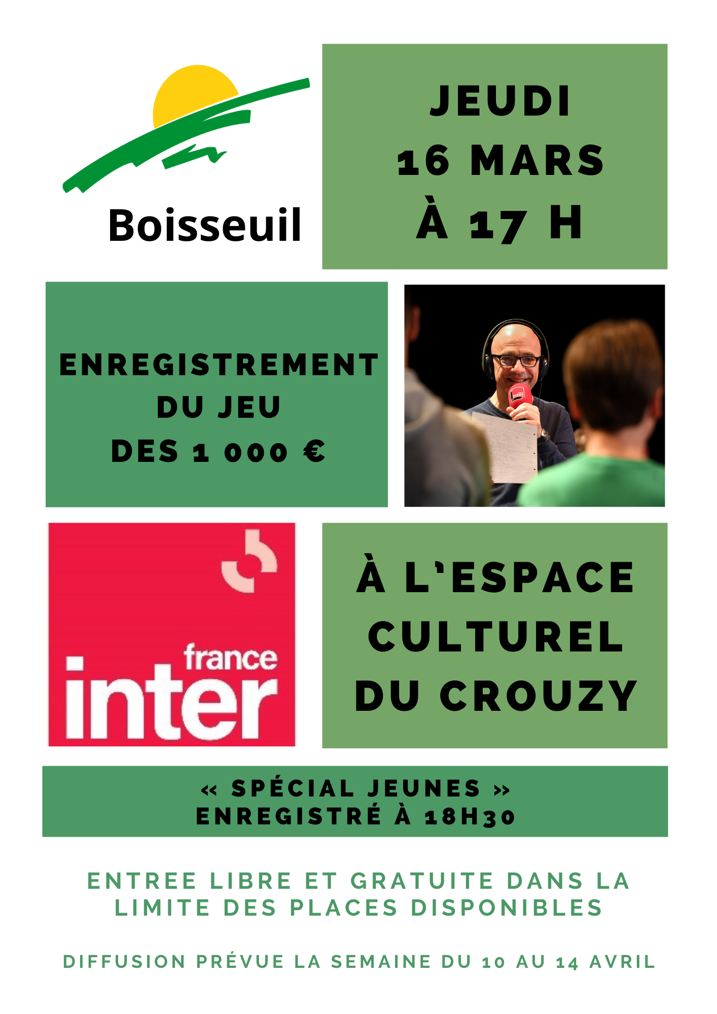 Le Jeu des 1000 euros de FRANCE INTER, présenté par Nicolas STOUFFLET, s’enregistre à BOISSEUIL !