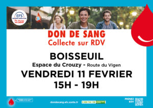 Collecte sur rendez-vous : Don du sang – 11 février Vous trouverez ci-joint le lien pour prise de RDV : https://efs.link/XReTb ou le QRCode. janvier 27, 2022 Publié dans Actualités