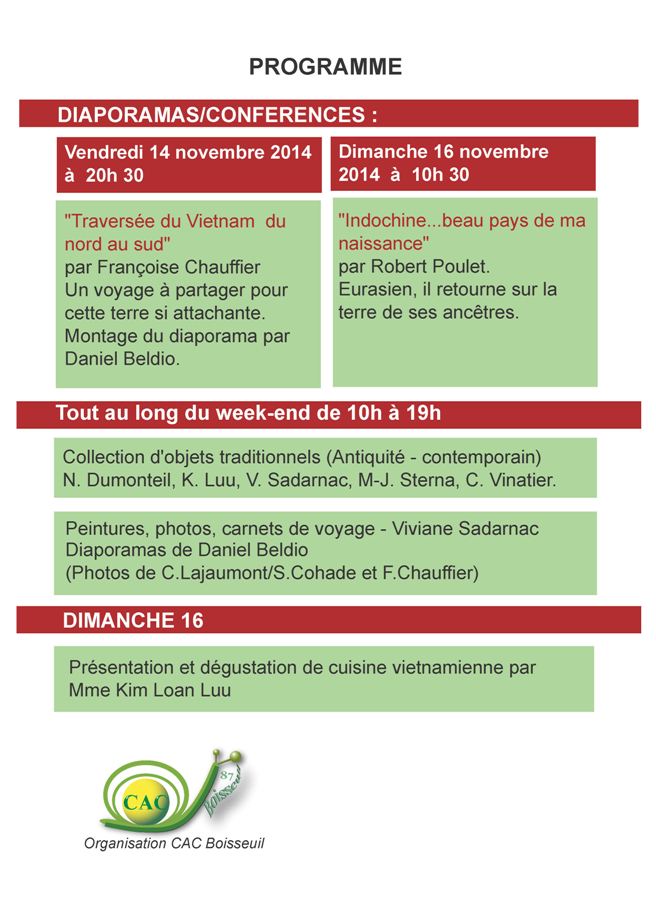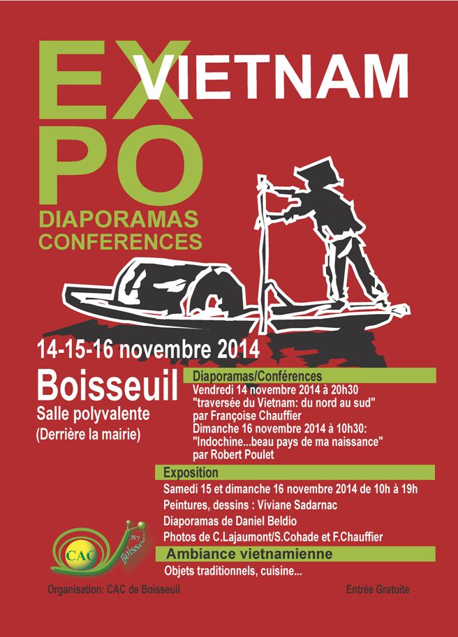 Affiche Expo_Vietnam Le CAC propose une exposition , des diaporamas des conférences sur le VIETNAM les 14, 15 et 16 novembre 2014 à la salle polyvalente.