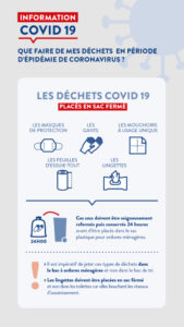 Après avoir remarqué de nombreux masques sur le sol de la commune, nous vous remercions de bien vouloir prendre soin de la façon de traiter vos équipements de protection contre la Covid 19 après utilisation.