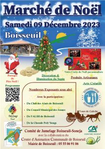 Le Comité de Jumelage de Boisseuil avec la collaboration du Centre d’Animation Communale propose le traditionnel marché de noël le samedi 9 décembre place de la paix.