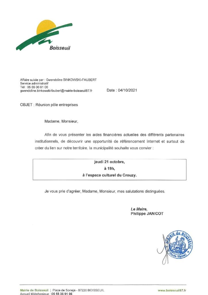 Invitation Pôle entreprises : 21 octobre … Lire la suite Invitation Pôle entreprises : 21 octobre octobre 18, 2021 Publié dans Actualités