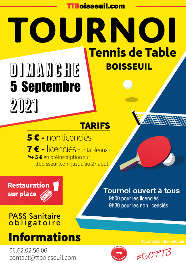 Tournoi tennis de table … Lire la suite Tournoi tennis de table septembre 2, 2021 Publié dans Actualités