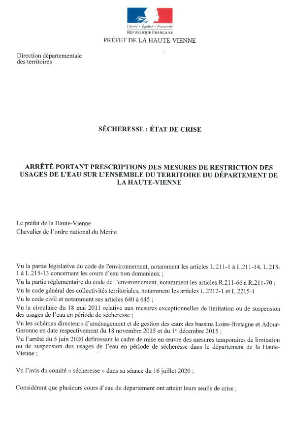 Maintien en sècheresse renforcée … Lire la suite Maintien en sècheresse renforcée juillet 23, 2020 Publié dans Actualités
