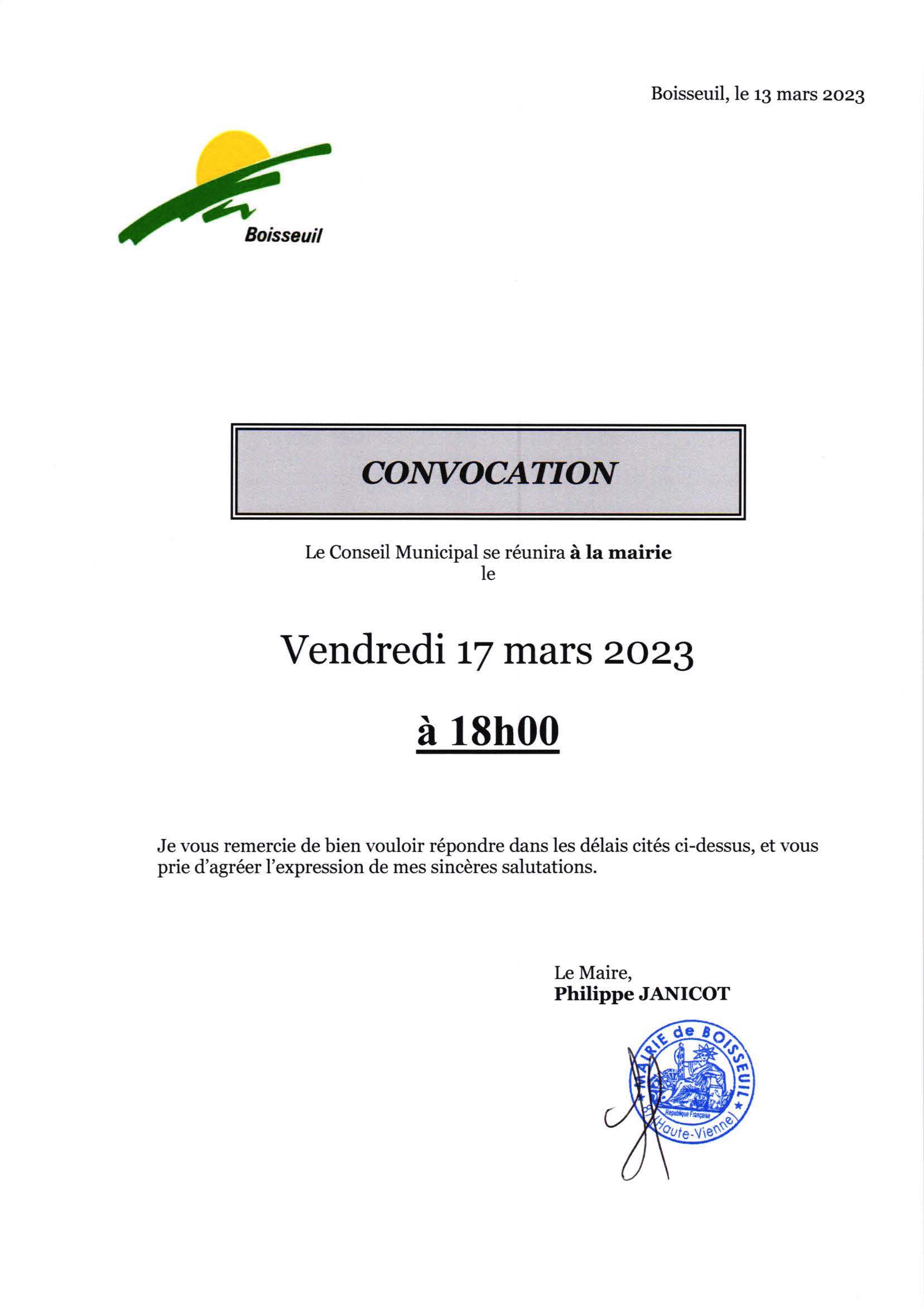 Convocation Conseil municipal … Lire la suite Convocation Conseil municipal mars 13, 2023 Publié dans Actualités