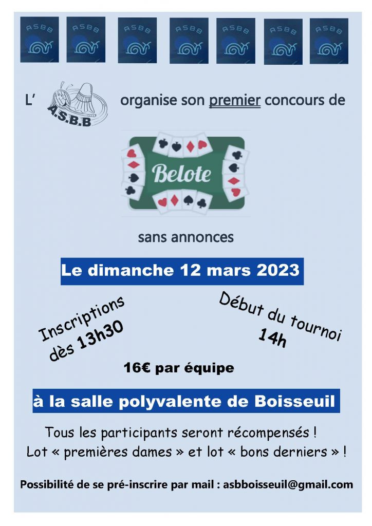 … Lire la suite Dimanche 12 mars : CONCOURS DE BELOTE