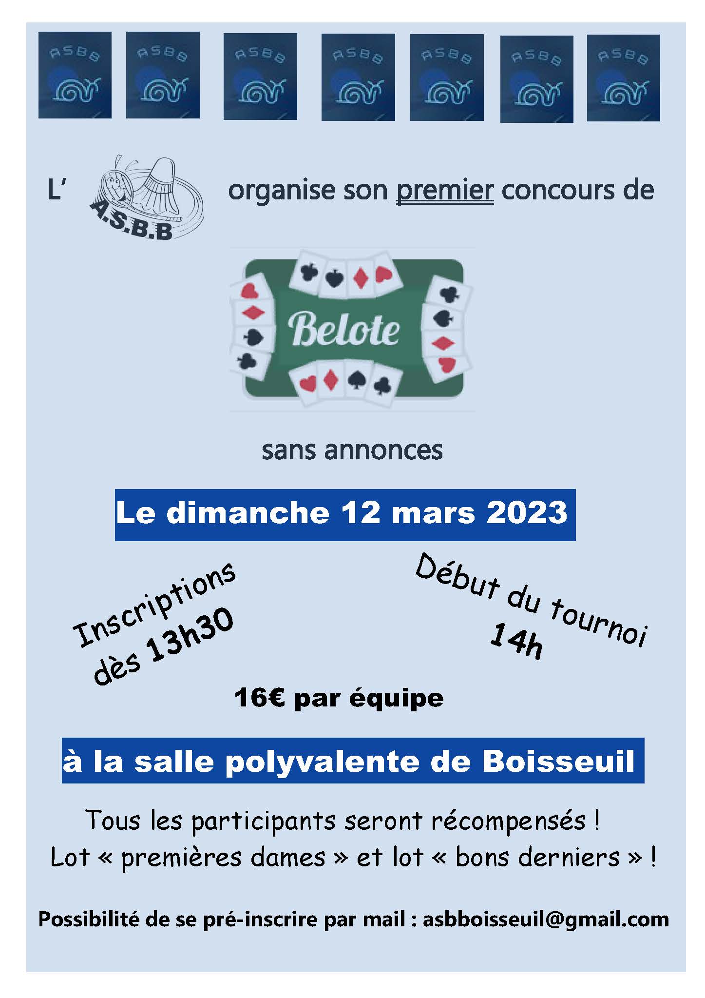 Dimanche 12 mars : CONCOURS DE BELOTE