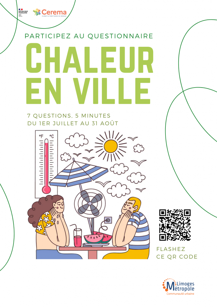 Chaleur en ville : questionnaire … Lire la suite Chaleur en ville : questionnaire juillet 7, 2023 Publié dans Actualités