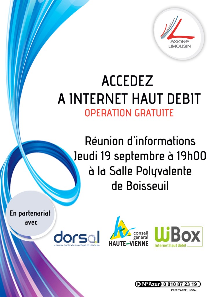 La desserte internet de notre commune dépend d’un central téléphonique ADSL et le débit internet disponible chez chacun d’entre vous peut paraitre inconfortable et très insuffisant.… Lire la suiteAccés internet/Axione Limousin